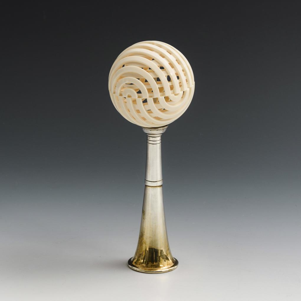 Elfenbein-Zierkugel auf Silberfuß.