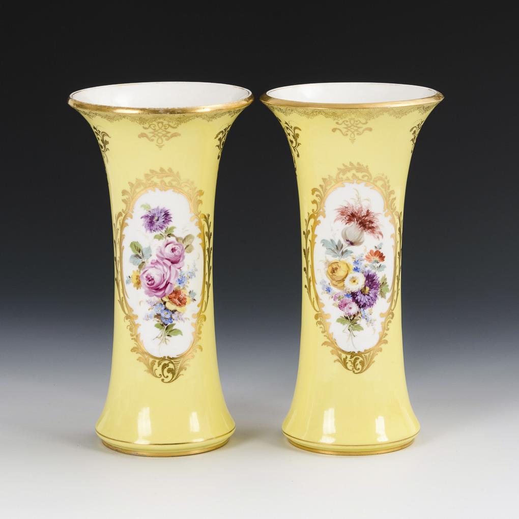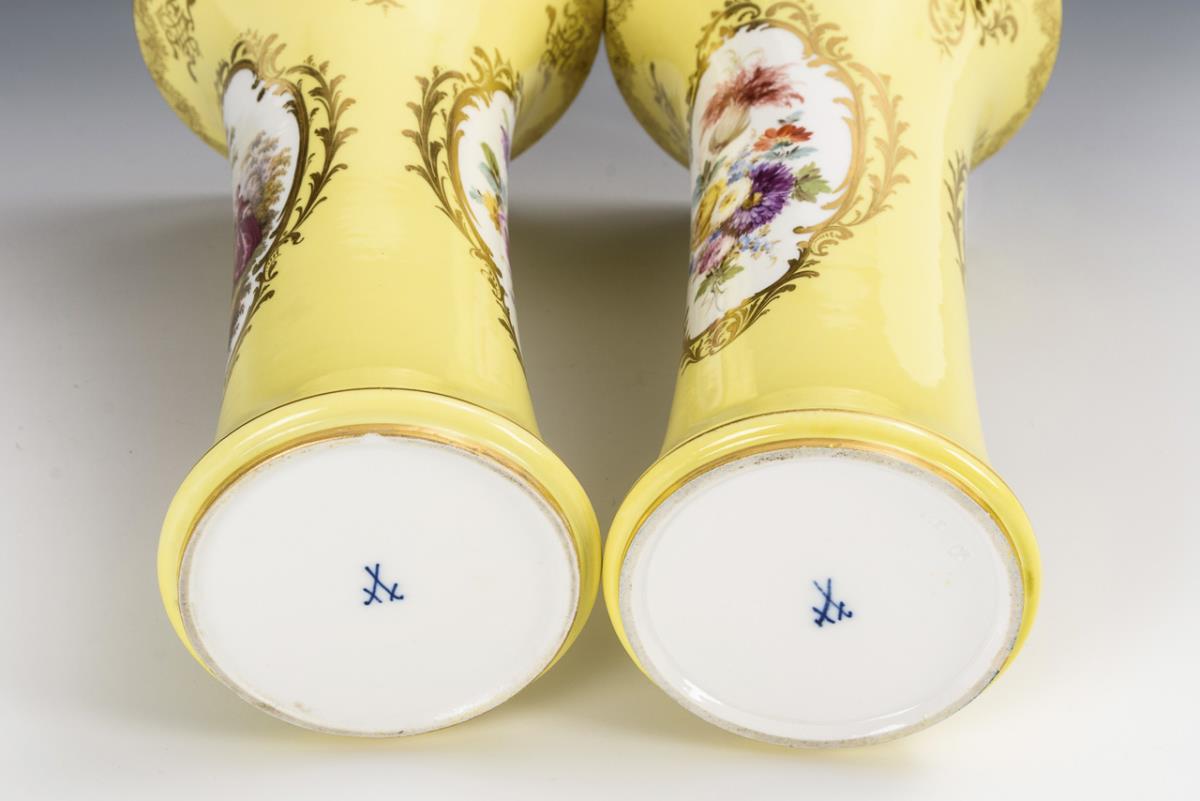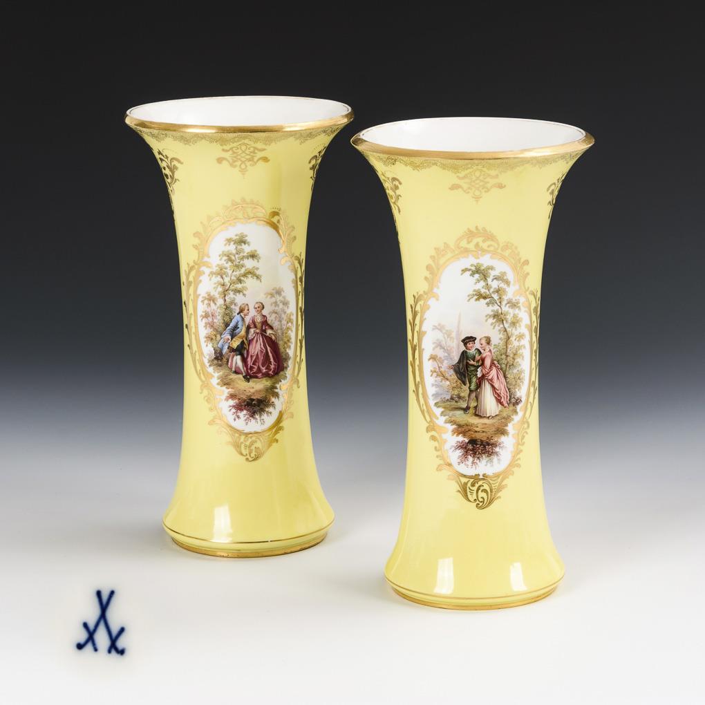Paar Flötenvasen mit Watteaumalerei. Meissen.