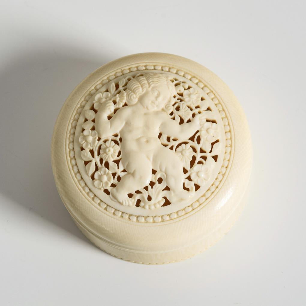 Jugendstil-Elfenbeindose mit Puttorelief.