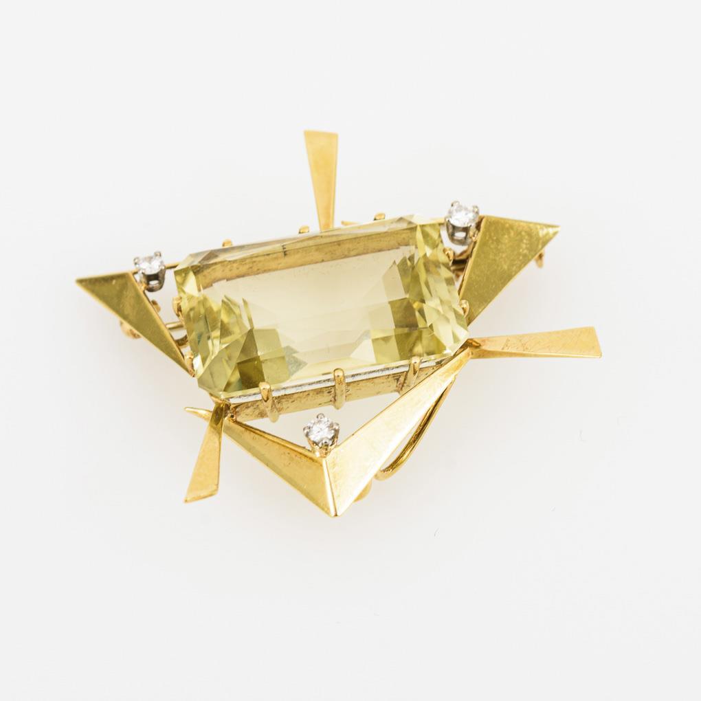 Schweizer Designer-Anhänger/Brosche mit Citrin und Brillanten. Alfred Frischknecht.