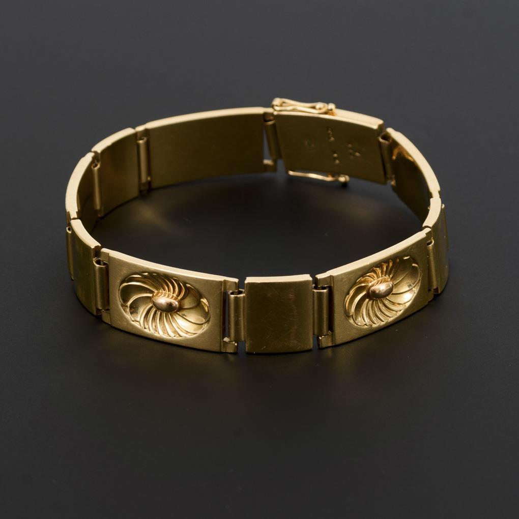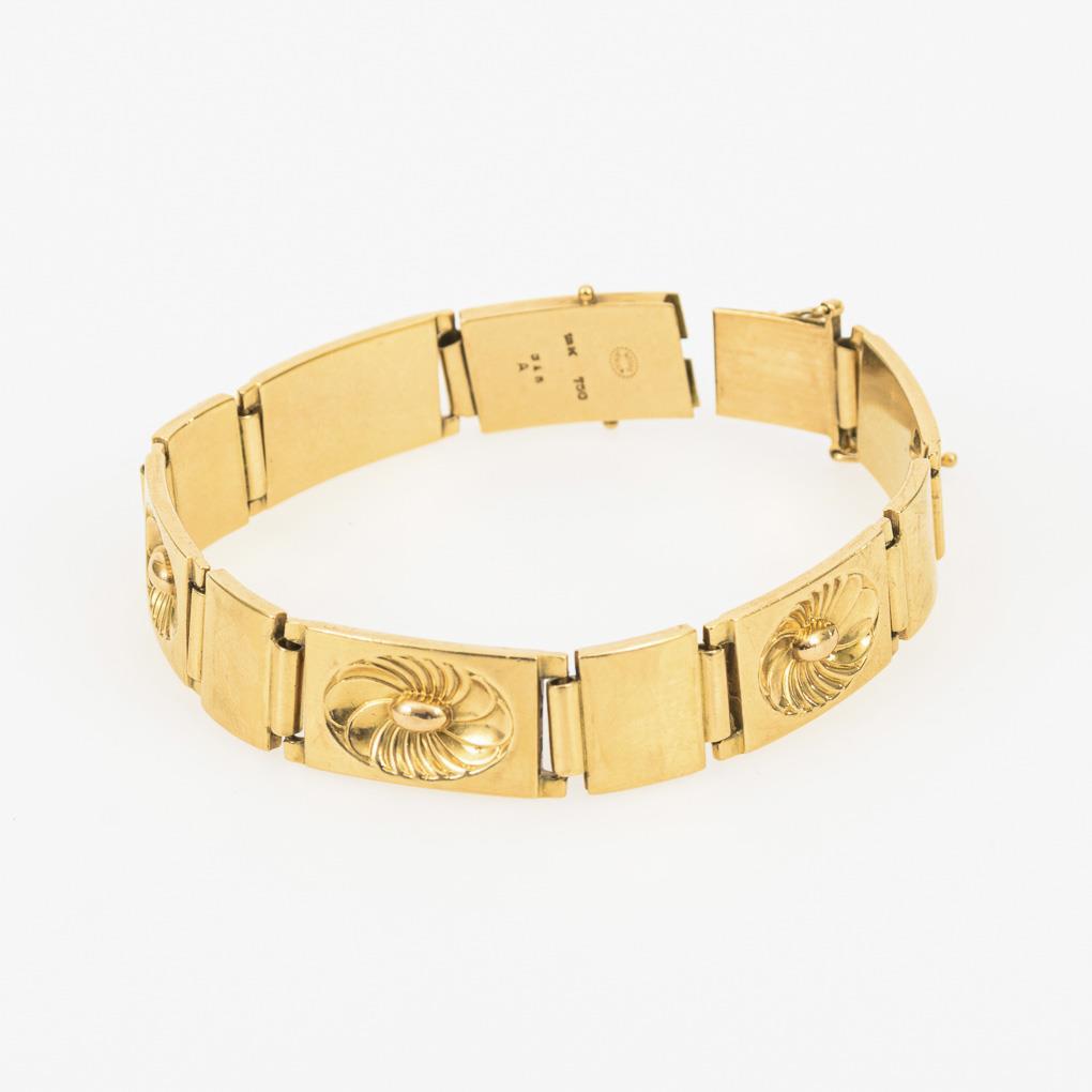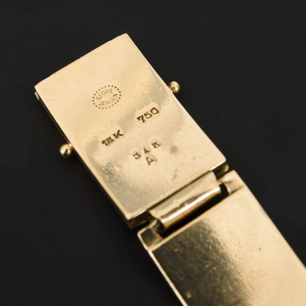 Gelbgold 750 gestempelt. Entwurf: Henry Pilstrup. Modell Nr. 348 A. Kopenhagen 1944-1977. 19,5 x 1,2 cm. 54 g.