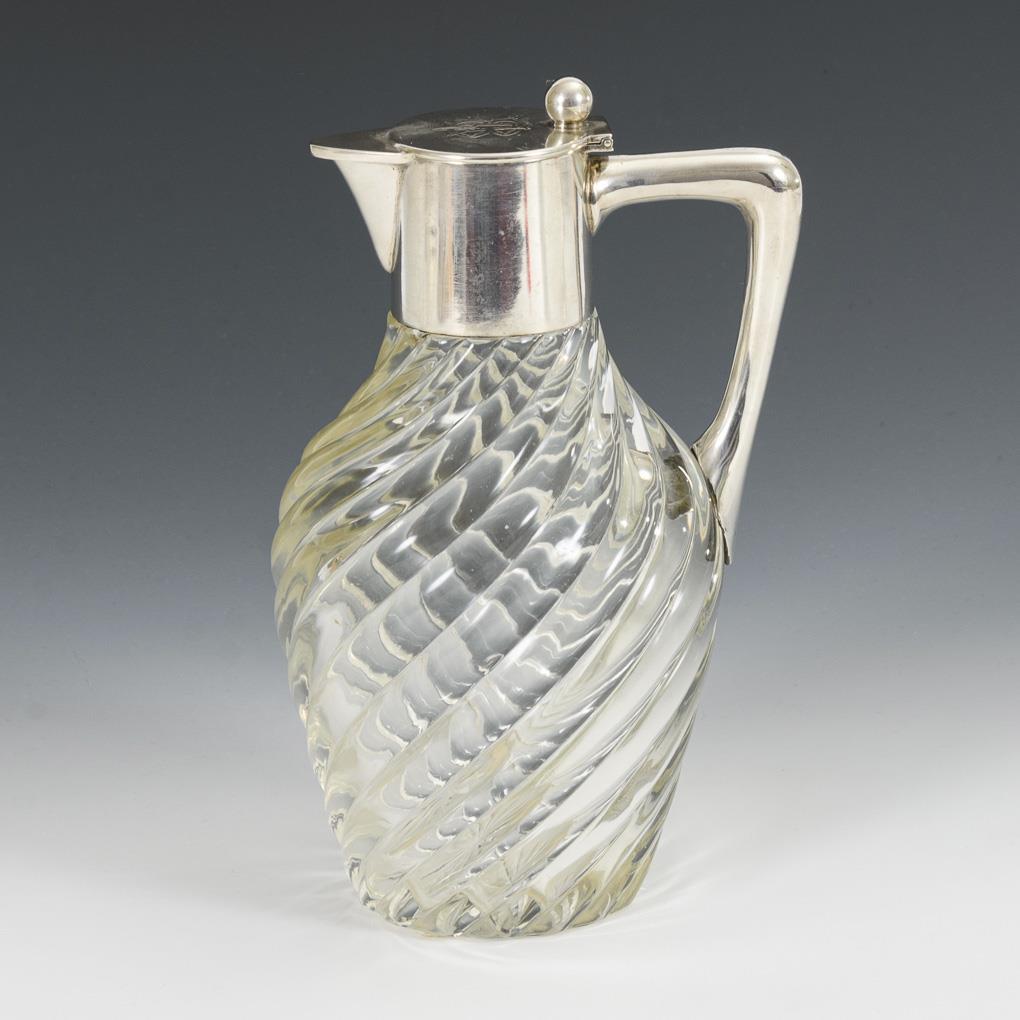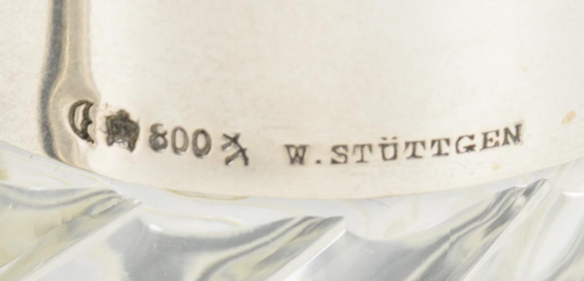 Gedrehter Glaskorpus und glatte Silbermontierung mit Scharnierdeckel. Auf dem Deckel Monogrammgravur: "AB", innen: "Albert Herzfeld s./l. Frau Braschmann 31. 3. 1901".