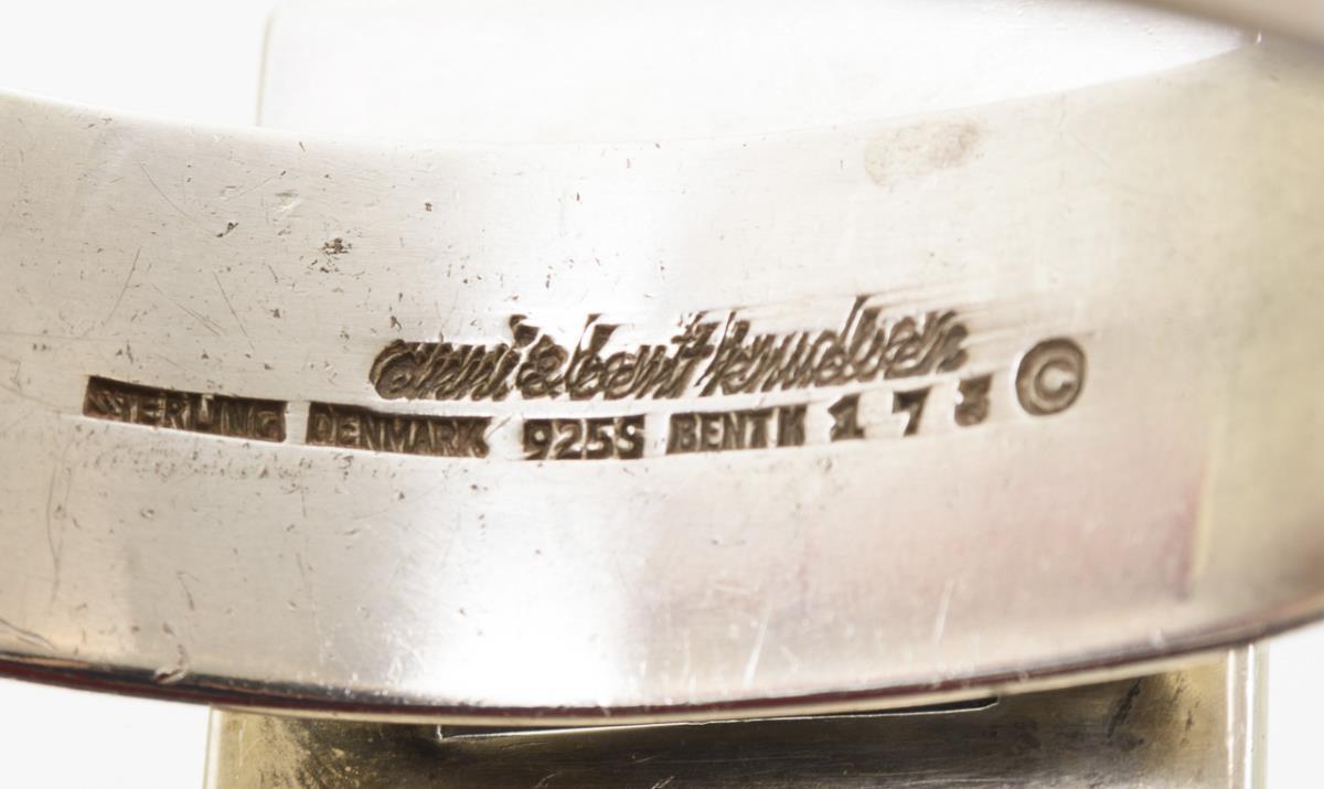 Silber 925 gestempelt. Entwurf Bent Knudsen. Kolding ab 1956. Modell Nr. 173. Ø 6 cm. Breite 1,7 cm. Schauteil 3 x 3 cm. 77,9 g.
