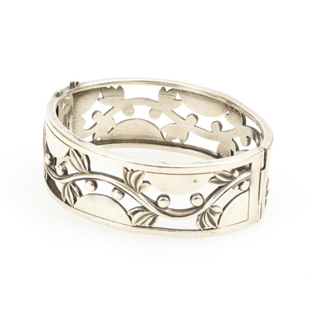 Silber 925 gestempelt. Entwurf: Harald Nielsen, Kopenhagen 1933-1944. Modell Nr. 66. Ø 5,7 cm. Breite 2 cm. 41,4 g.