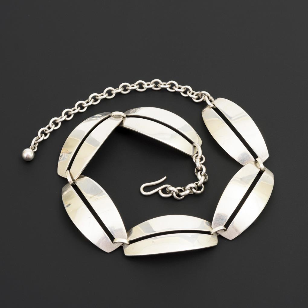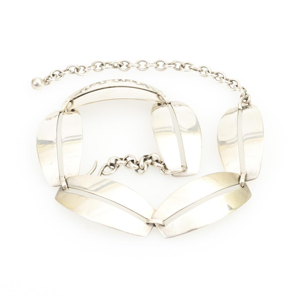 Silber 925 gestempelt. Punze: Georg Jensen 170 H. ca 1960, Kopenhagen. Entwurf: Nana Ditzel. 37-42 cm. Breite 2 cm. 52 g.