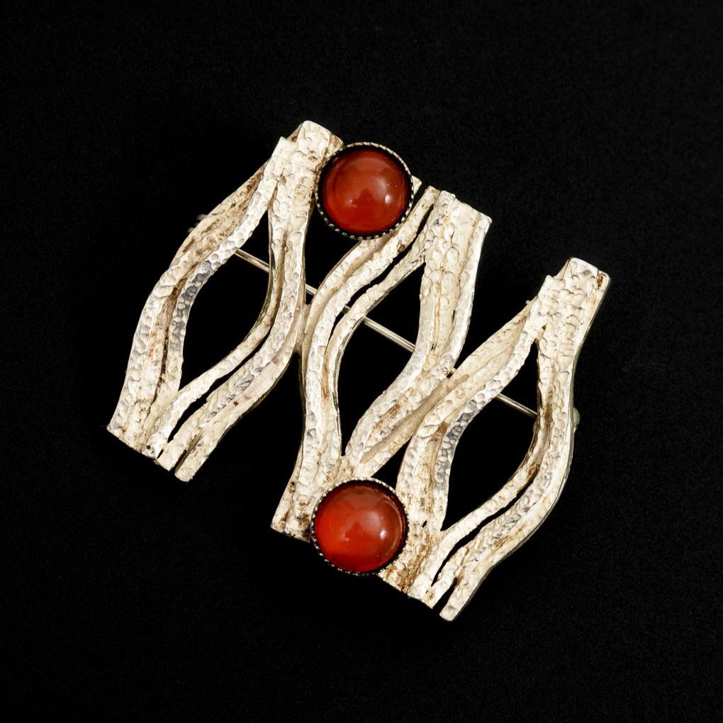 Designer-Brosche mit Karneolen.