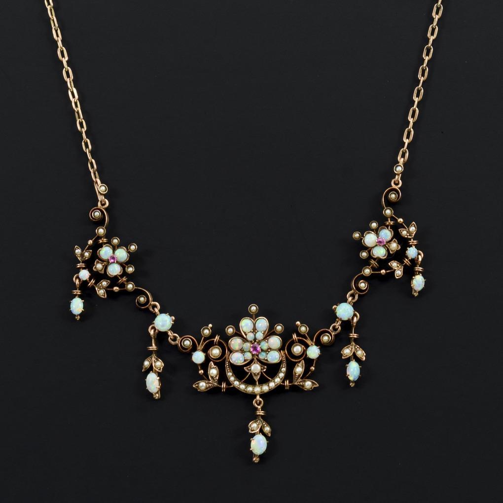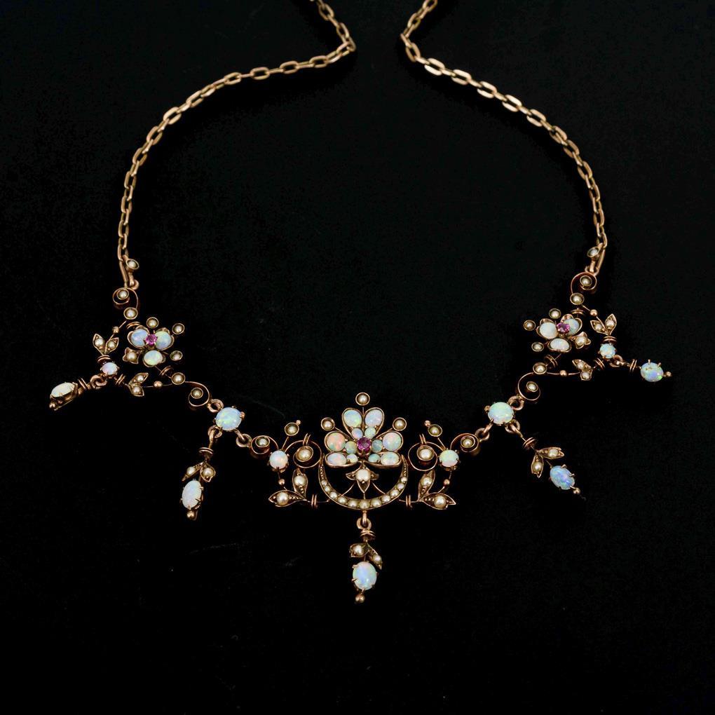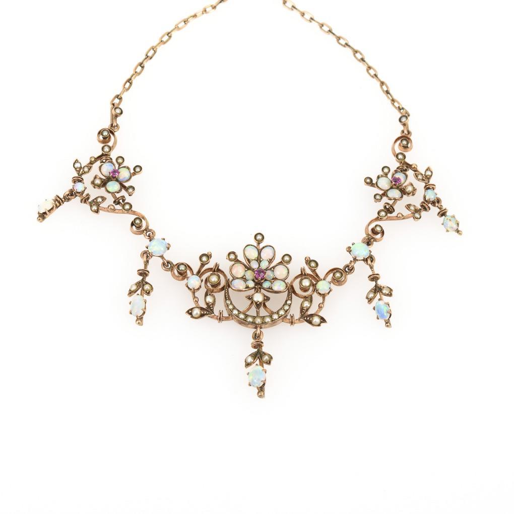 Reizvolles Jugendstilcollier mit Opalen und Perlchen.