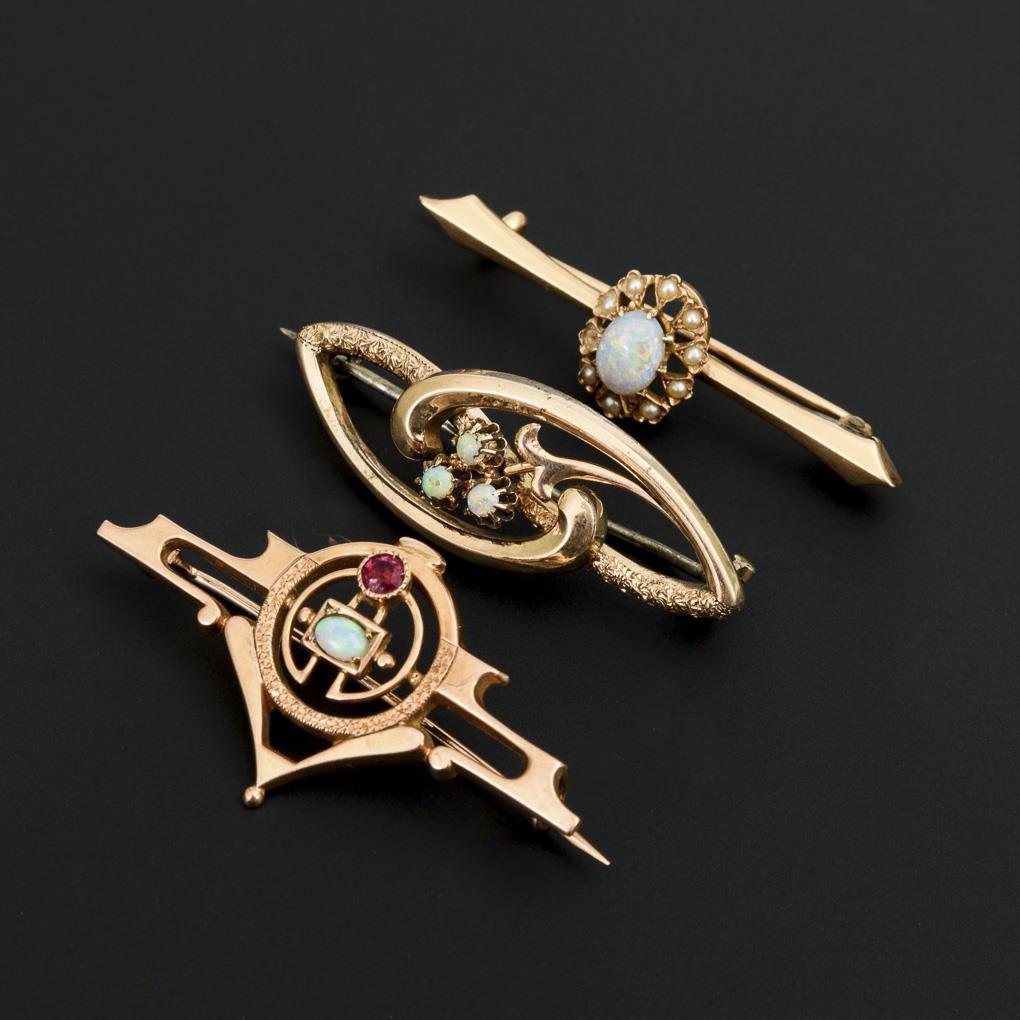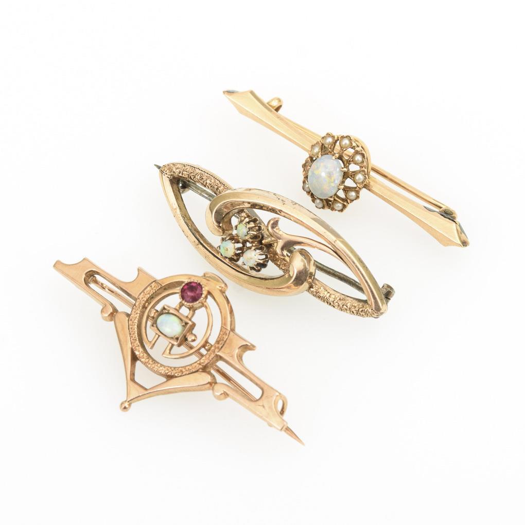 3 Jugendstilbroschen mit Opalen.