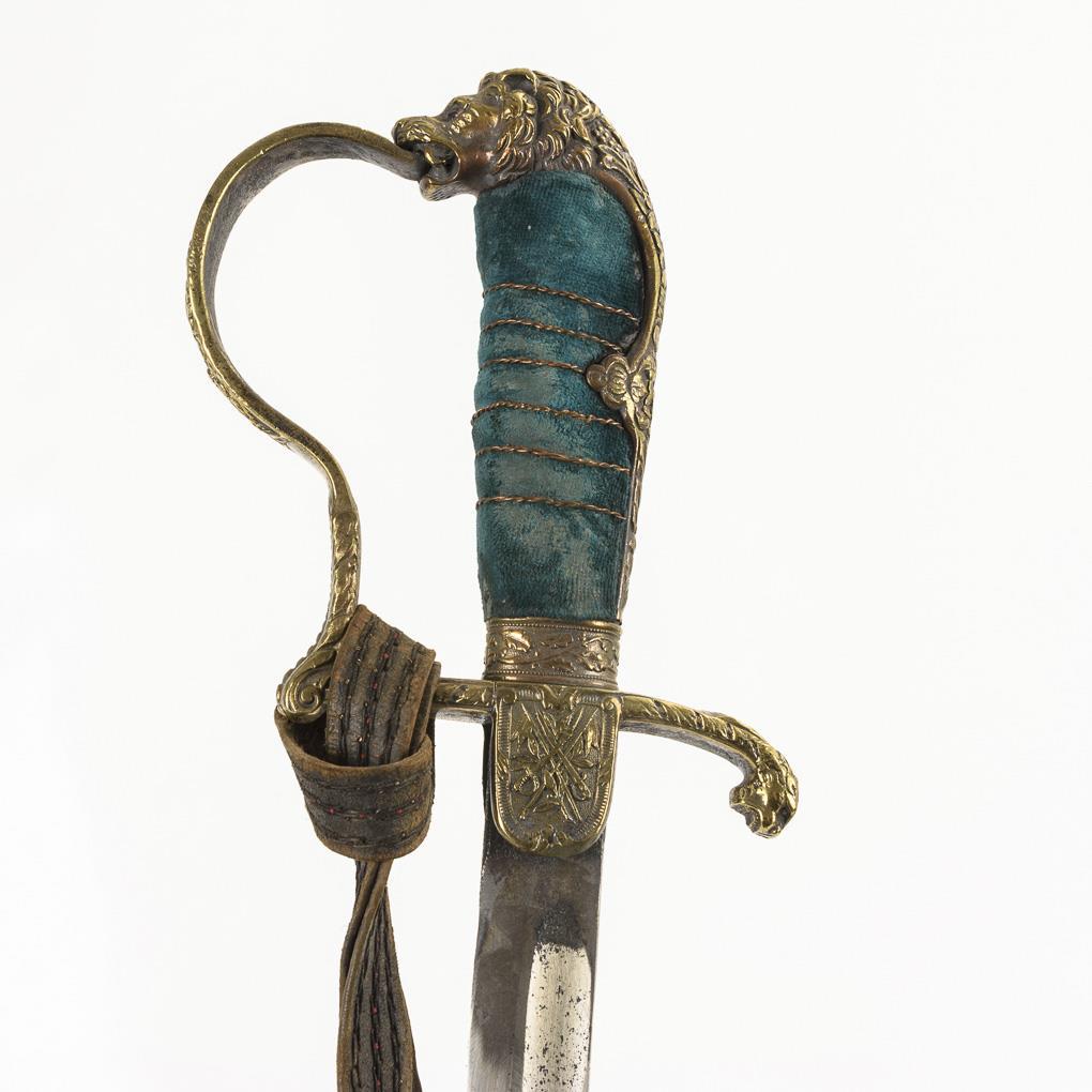 Leichter Löwenkopf-Säbel und Portepee.