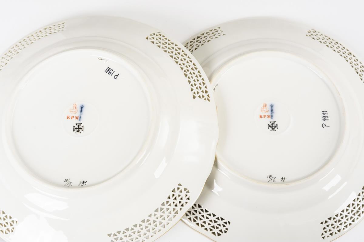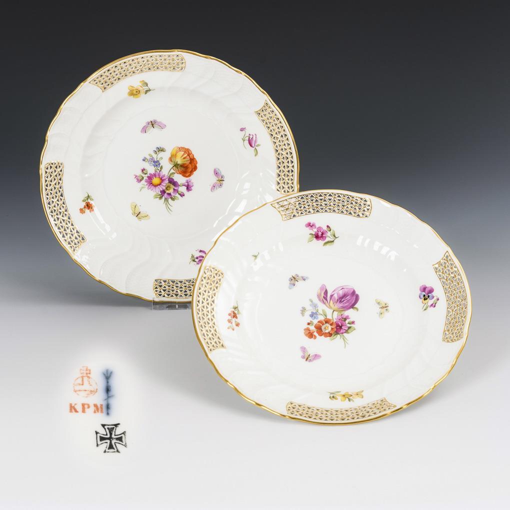 Paar Dessertteller mit Blumen- und Insektenmalerei. KPM Berlin.