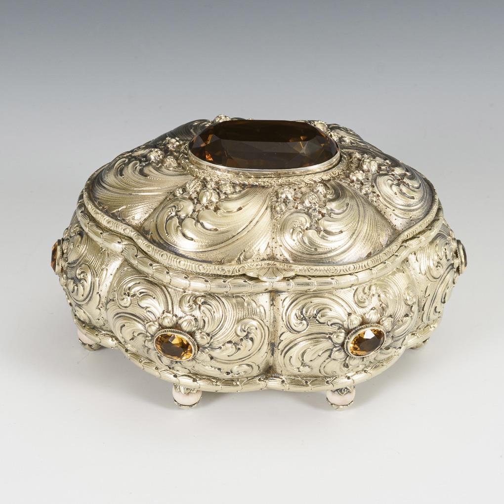 Reliefierte Deckeldose mit Citrinen. Robert Merath.
