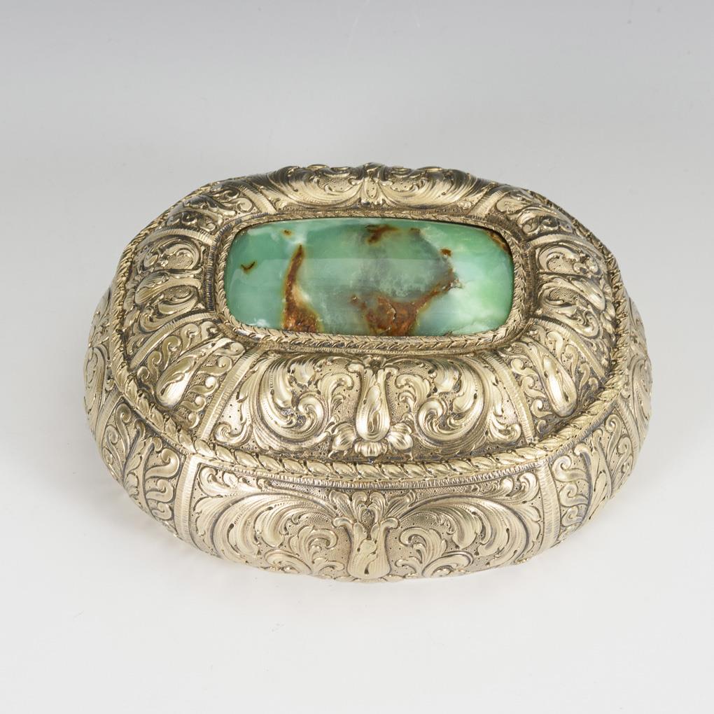 Sie befinden sich hier:   Startseite Kategorien Silber Deckeldose mit Chrysopras| siehe Nachtrag