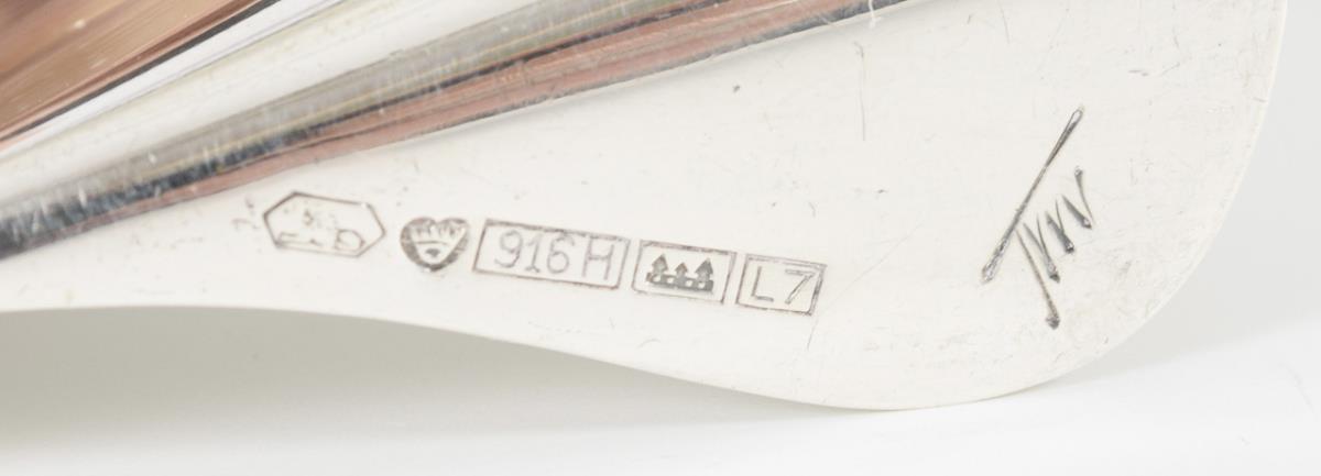 Beschauzeichen/916 H/Firmenzeichen/Jahreszeichen gepunzt. 1957 und 1964. Hämeenlinna. Signiert. Modellnr. TW 73. WIRKKALA, Tapio(1915-1985)
