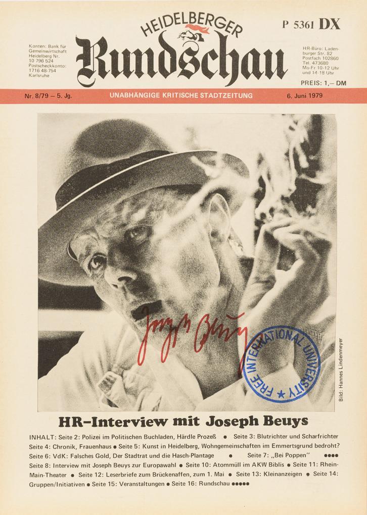 1 von 3500 Exemplaren der Unabhängigen Kritischen Stadtzeitung "Heidelberger Rundschau" vom 6. Juni 1979 mit Signatur von Joseph Beuys.