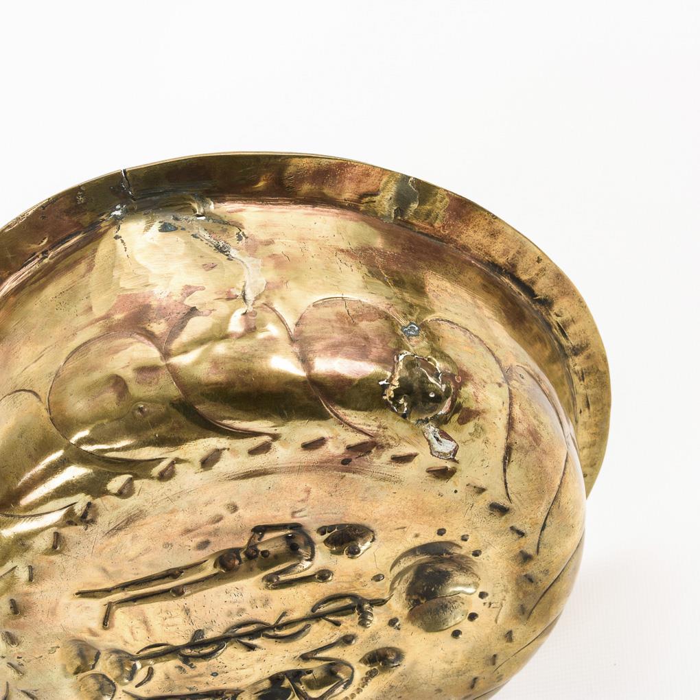 Messing in Form geschlagen und gepunzt. H 7,5 cm, Ø 27,5 cm.