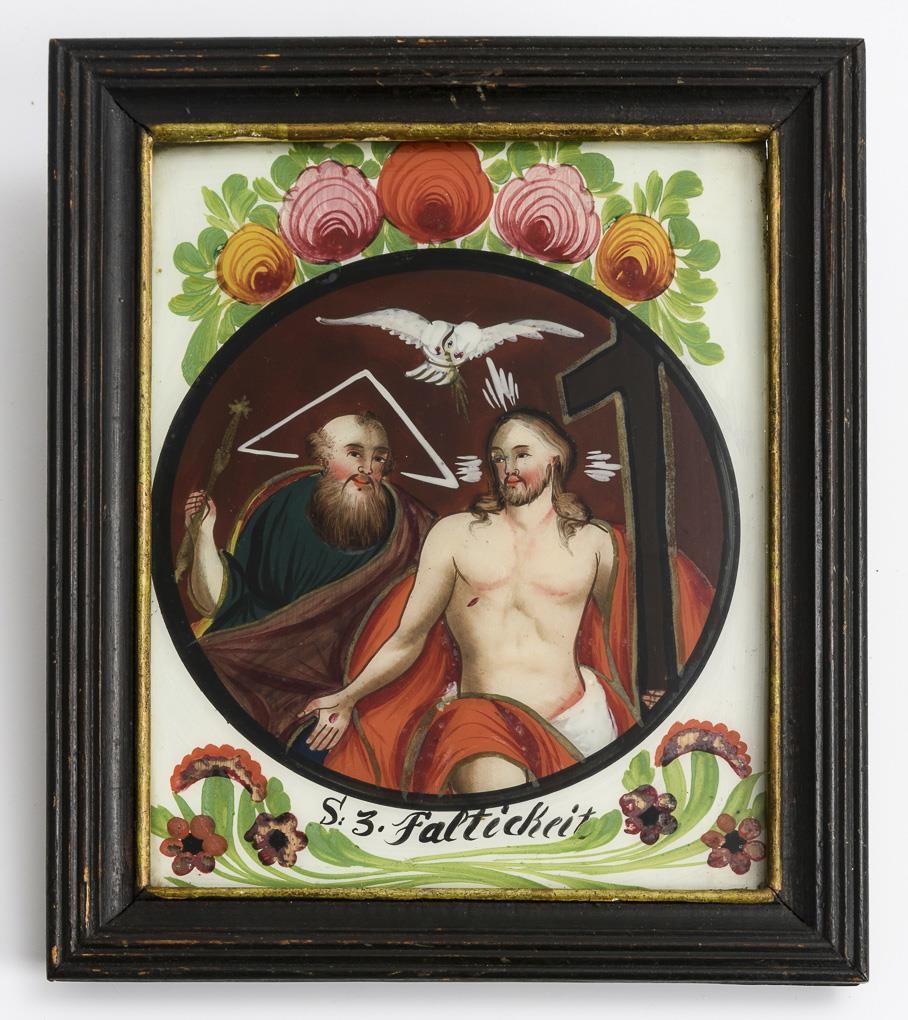 Hinterglasgemälde: Heilige Dreifaltigkeit.
