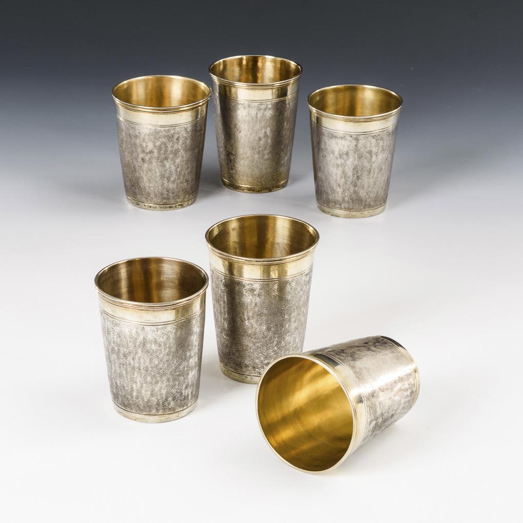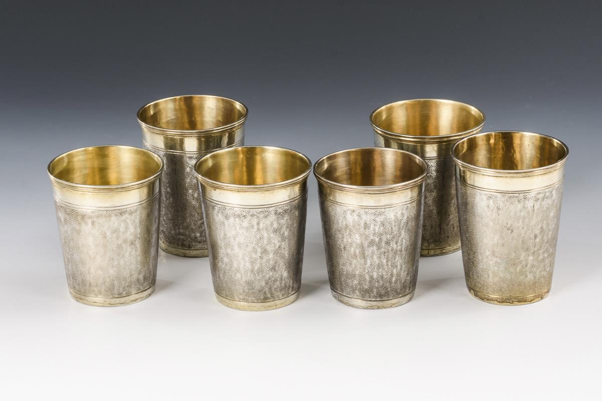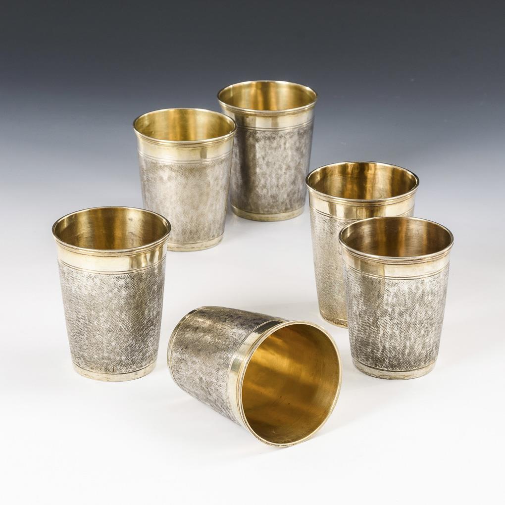 Seltenes Ensemble von 6 barocken Schlangenhautbechern. Nürnberg.