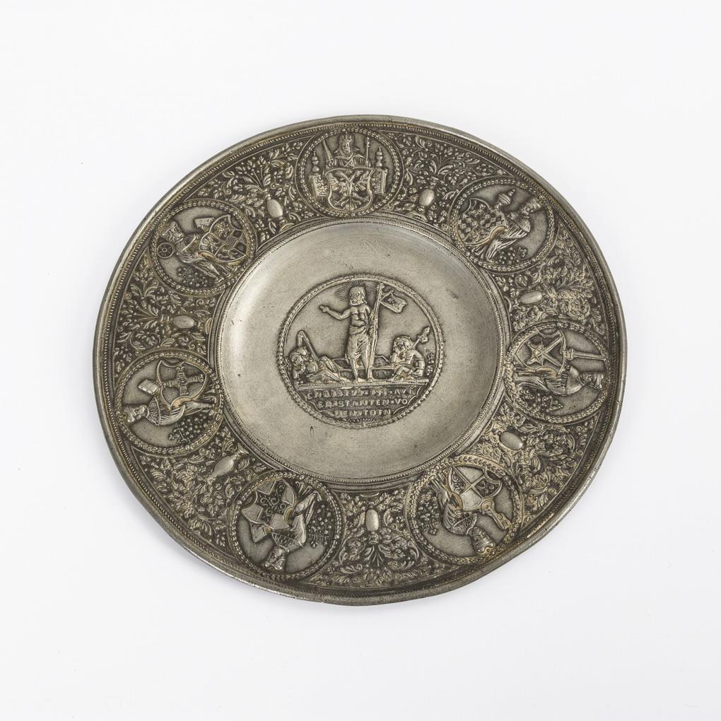 Sie befinden sich hier:   Startseite Kategorien Metallarbeiten 2 Zinn-Reliefteller: Frühbarocker Nürnberger Zinnteller sowie Auferstehungsteller