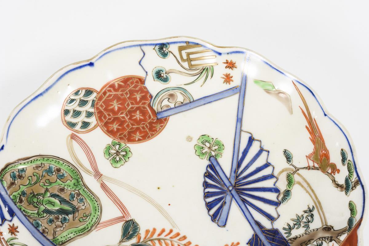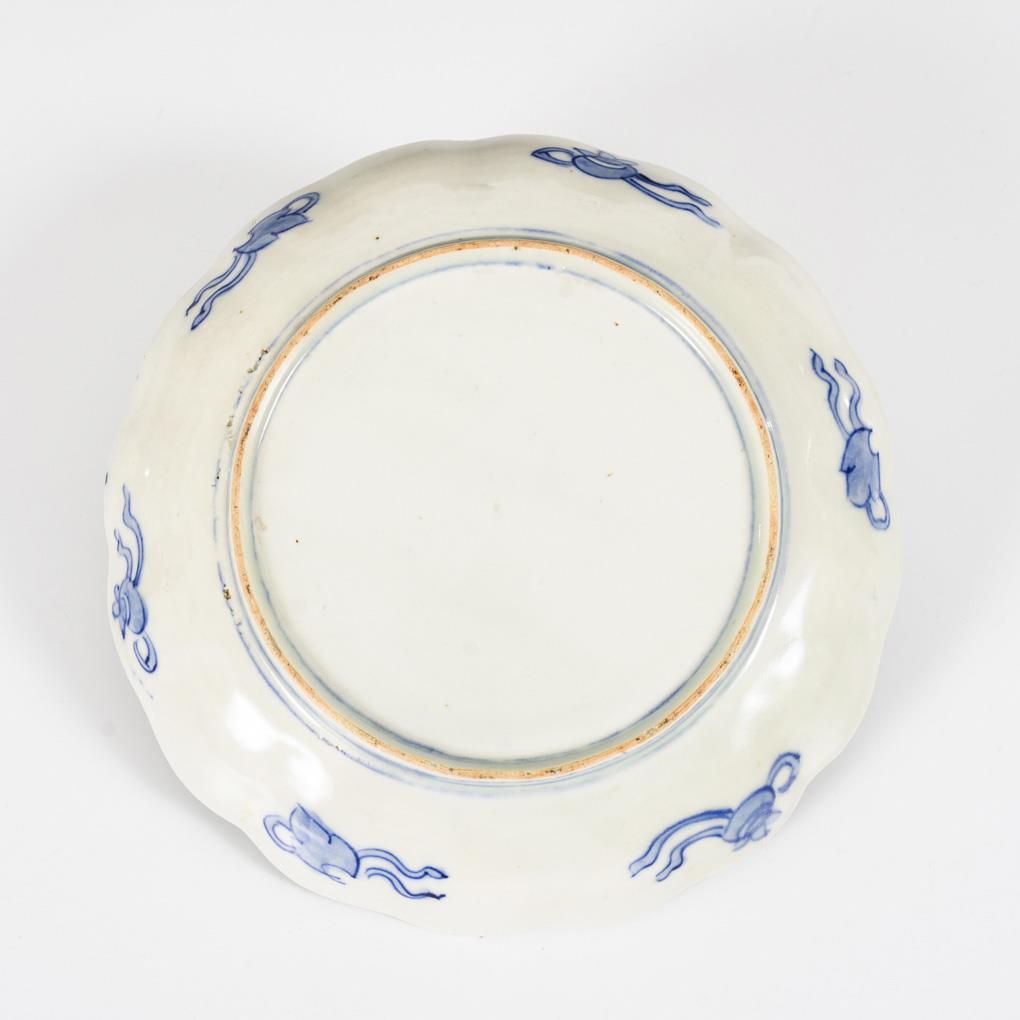 Porzellan, teils in Unterglasur-Blaumalerei, Grün, Rot und Gold. Ø 22 cm.