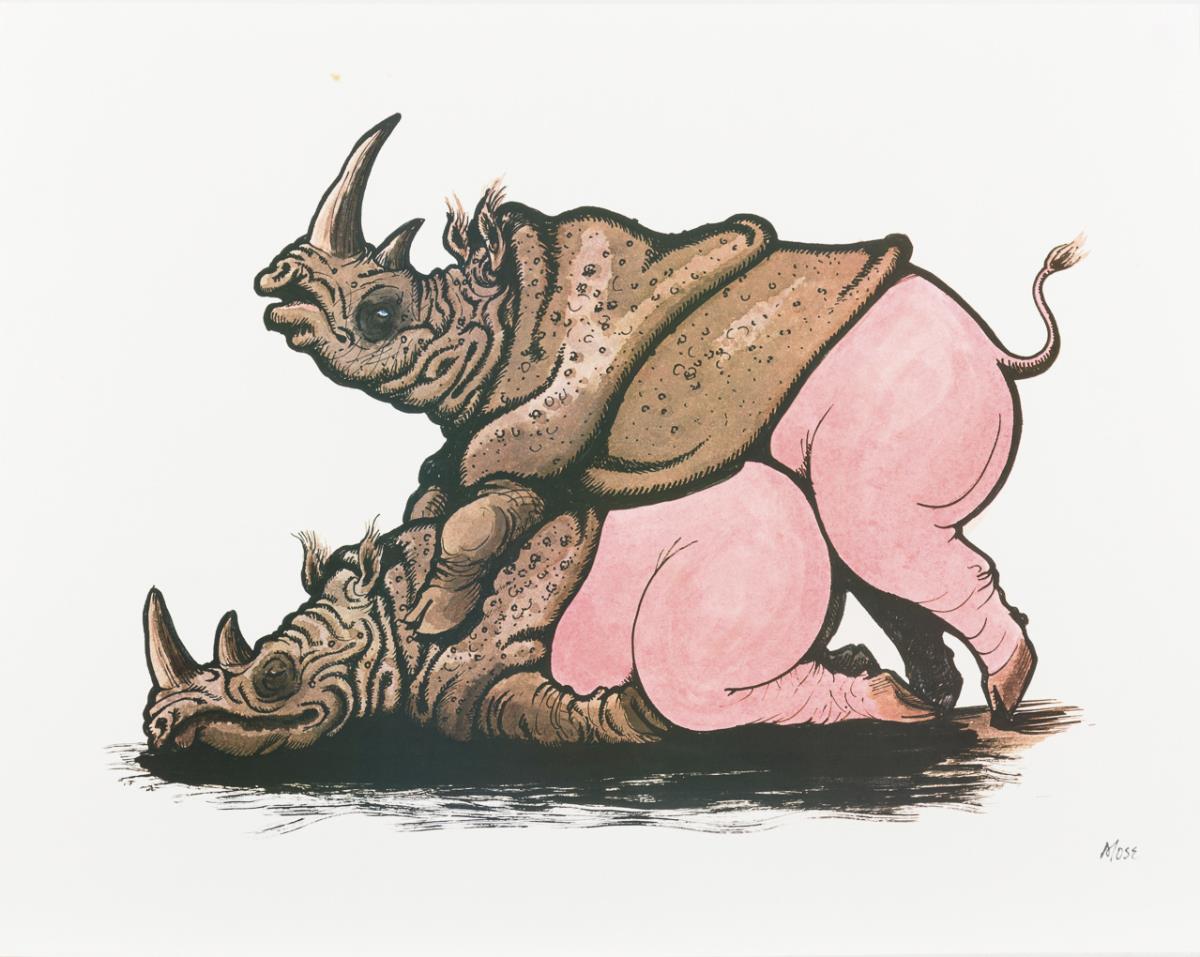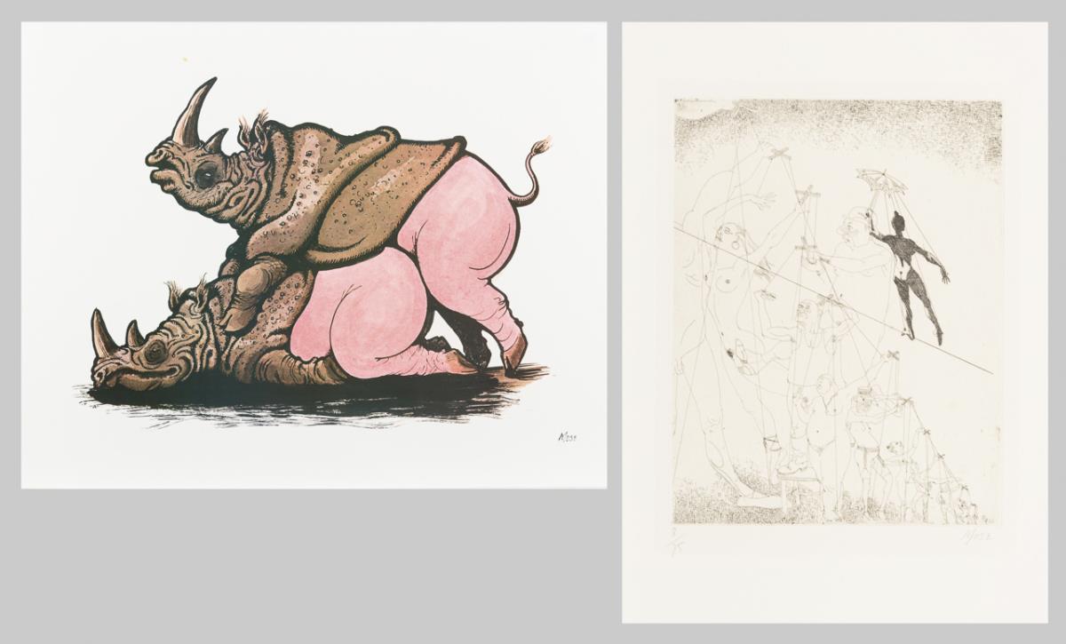 2 Werke: Nashörner beim Liebesakt und Akrobatenshow