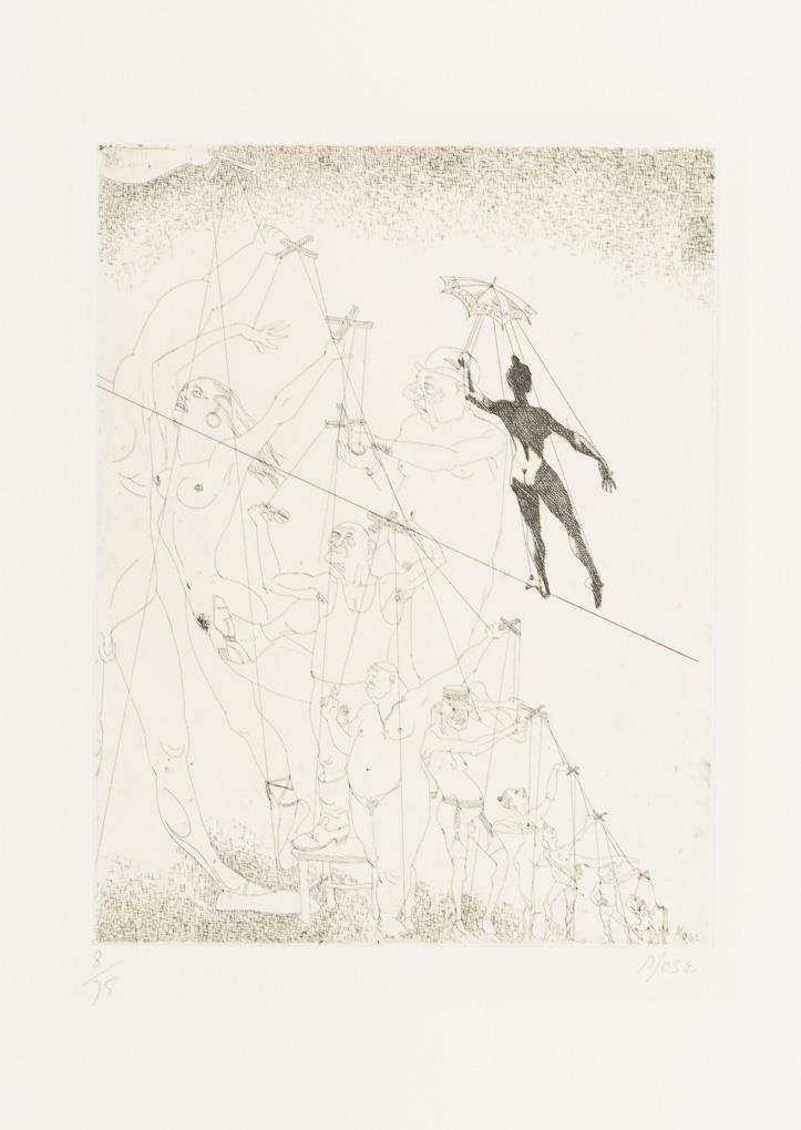 Nashörner: 47 x 60 cm, im Druck signiert, kleiner Fleck im oberen Bereich | Akrobatenshow: Platte: 27 x 21 cm, Blatt: 50,5 x 33 cm, Bleistiftsignatur.