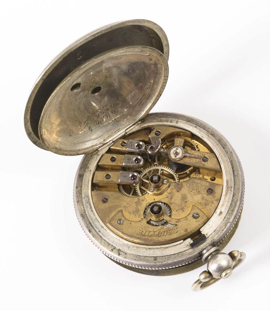 Brückenwerk mit Ankerhemmung, Schraubenunruh, gebläuter Spirale und Schlüsselaufzug. Läuft nicht. ManufacturyMarkMovement: Billodes, Gravur mit arabischen Zeichen. Weißes Emailzifferblatt mit osmanischen Keilziffern, Minuterie, kleiner Sekunde und gebläuten Spade-Zeigern. ManufacturyMarkDial: K. Serkisoff & Co., Constantinople.