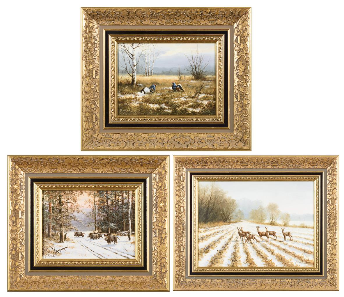 Zweimal Öl/Leinwand, einmal Öl/Holz. Links und rechts unten signiert.
