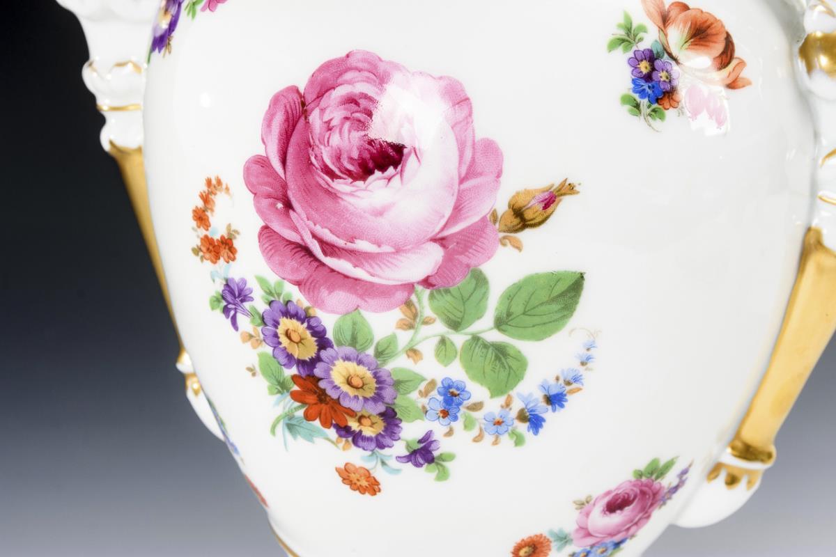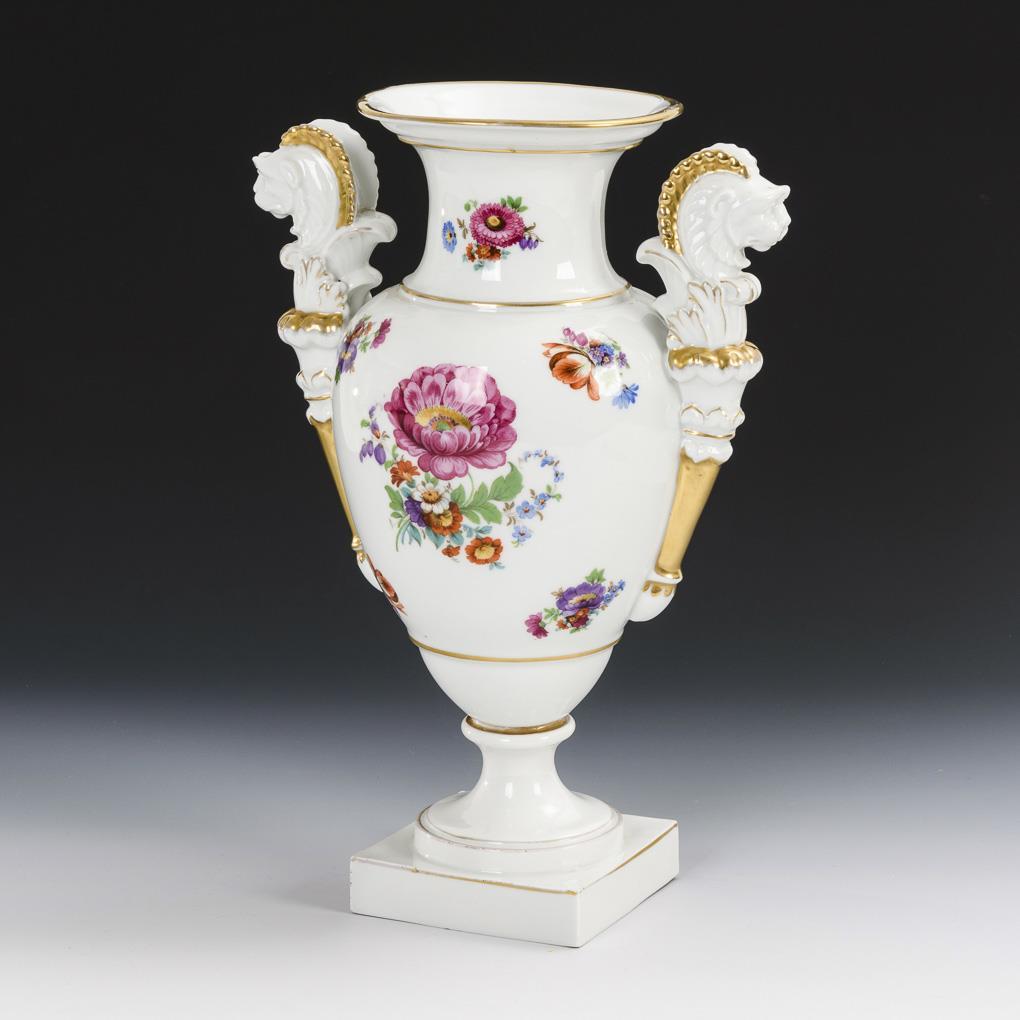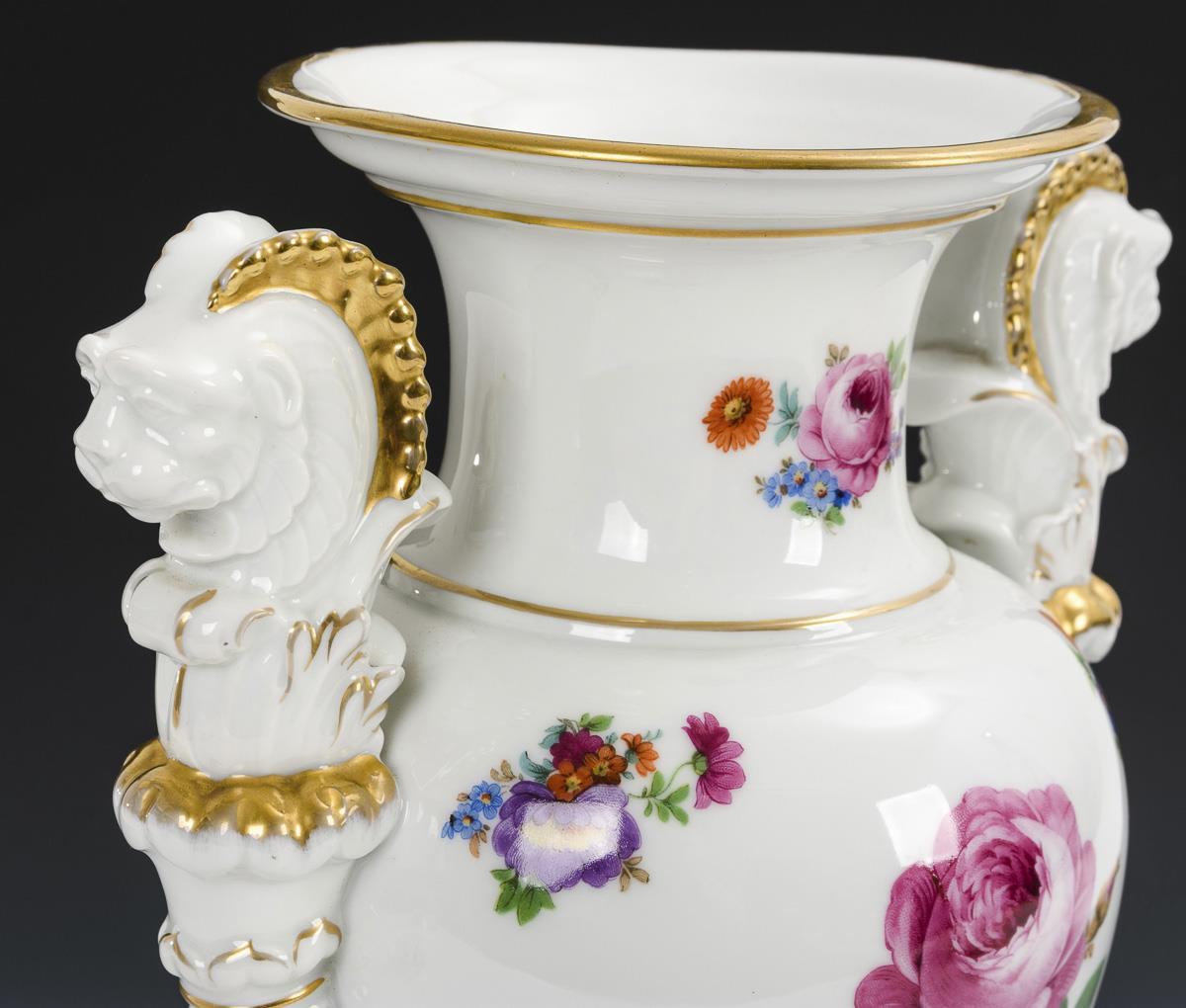 Löwenkopfvase mit Blumendekor. Aelteste Volkstedter.
