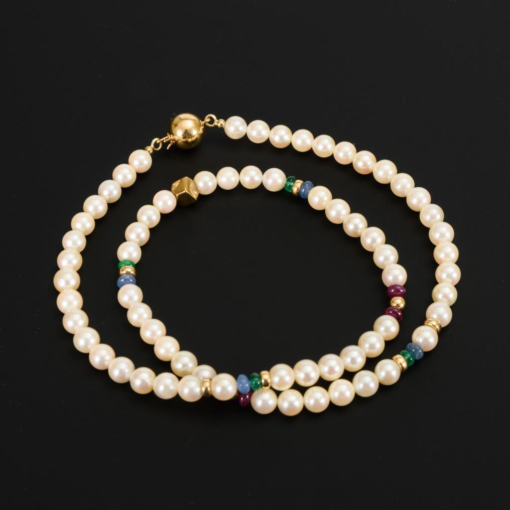 Zuchtperlenkette mit verschiedenen Steinen