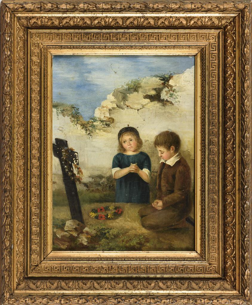 Unsigniert: Trauernde Kinder an einem Kreuz