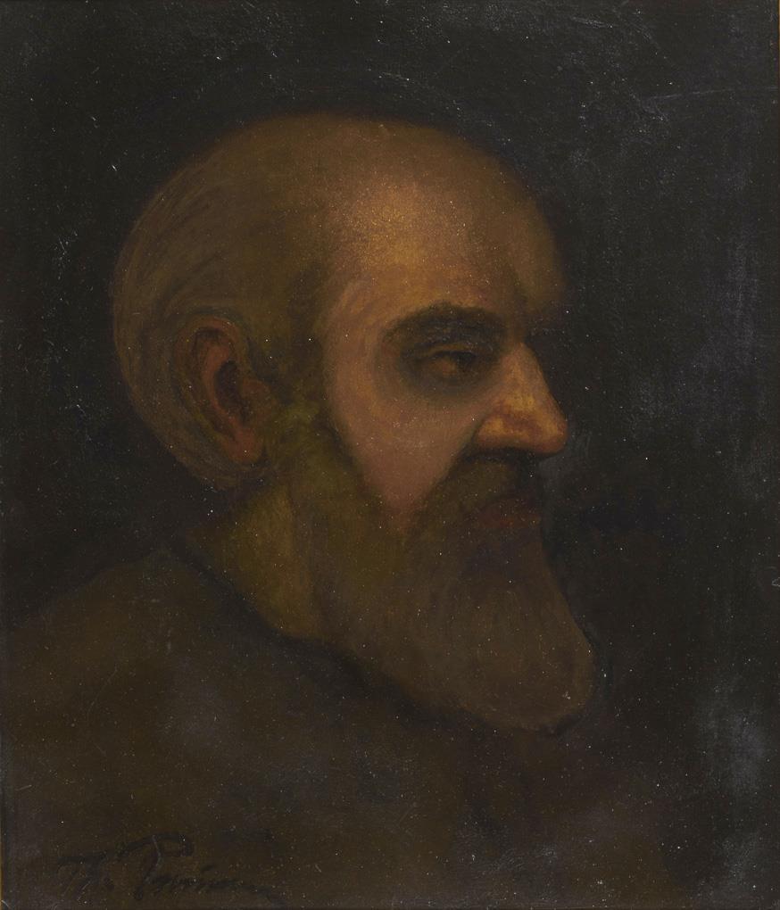 Profilbildnis eines älteren Mannes mit Bart vor dunklem Hintergrund. Retuschiert.