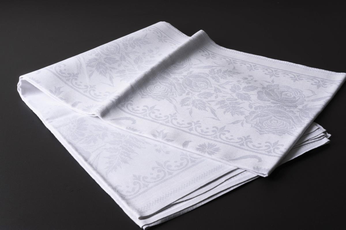 Leinendamast. 200 x 144 cm.