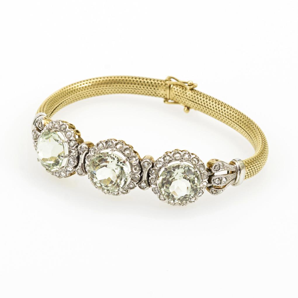 Art-déco-Armband mit Aquamarinen und Diamantrosen.