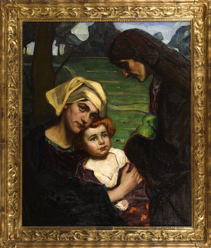 Öl/Leinwand. Unsigniert, auf Rahmenschild bezeichnet, verso auf Rahmen Klebezettel mit Inv.-Nr. 771 (St.K.M.).