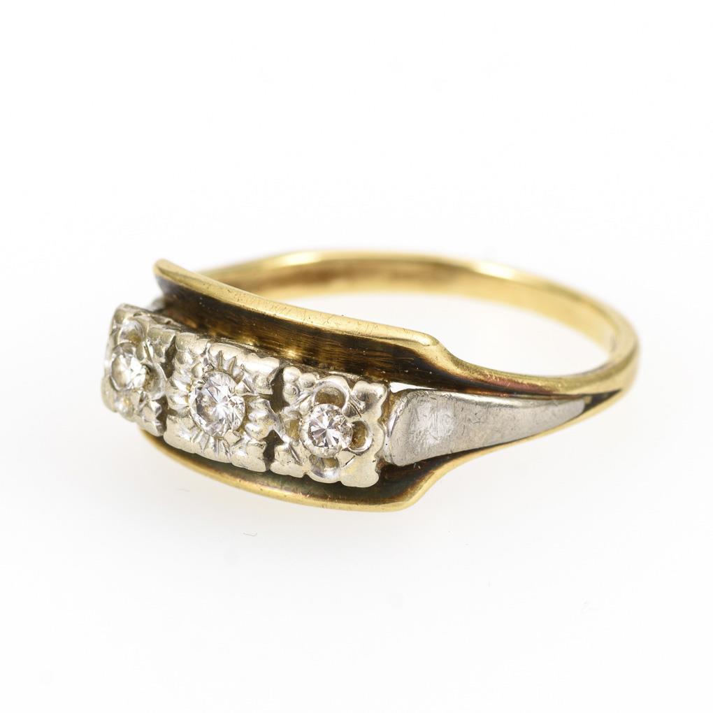 Gelbgold/Weißgold 585 gestempelt. Brillanten gesamt ca. 0,18 ct/H/PI-II. Ringgröße 58. 4,7 g.