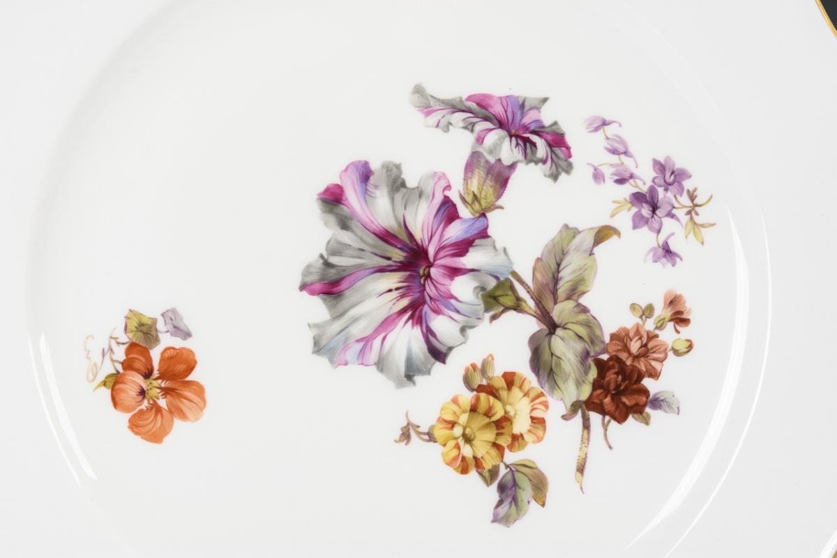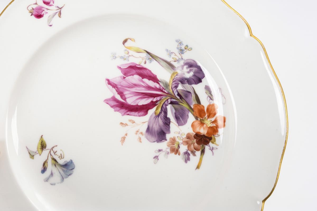 Kuchenteller und Speiseteller mit Blumenmalerei. KPM Berlin.