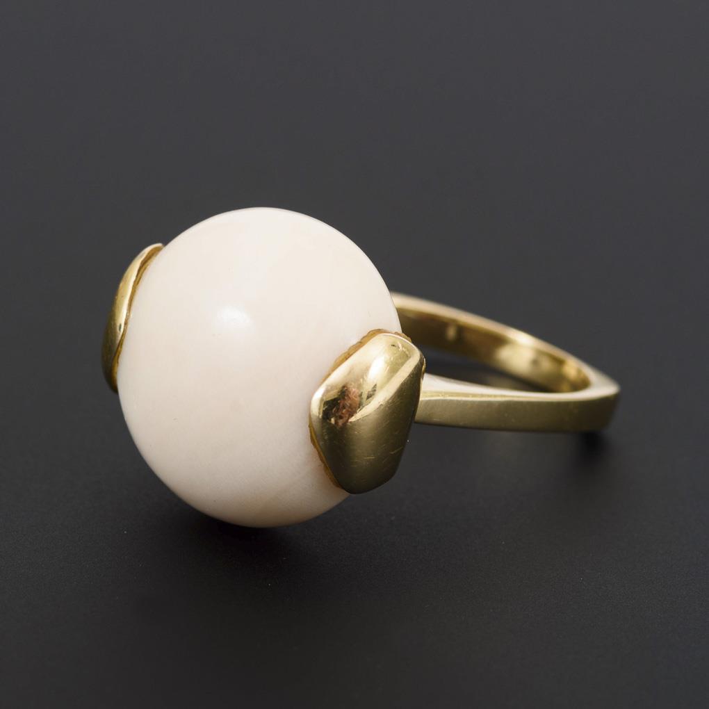 Gelbgold 585 gestempelt. Koralle Ø 1,9 cm. Ringgröße 61. 12,1 g.