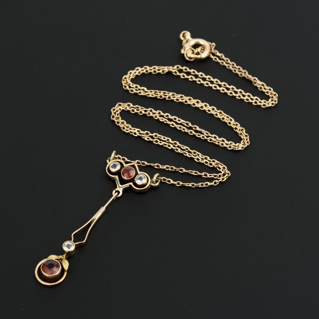 Jugendstil-Collier mit Granaten und farblosen Steinen.