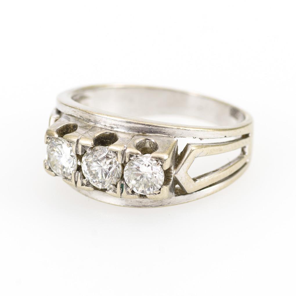Weißgold 585 gestempelt. Brillanten gesamt ca. 0,60 ct. Ringgröße 56. 5,4 g.