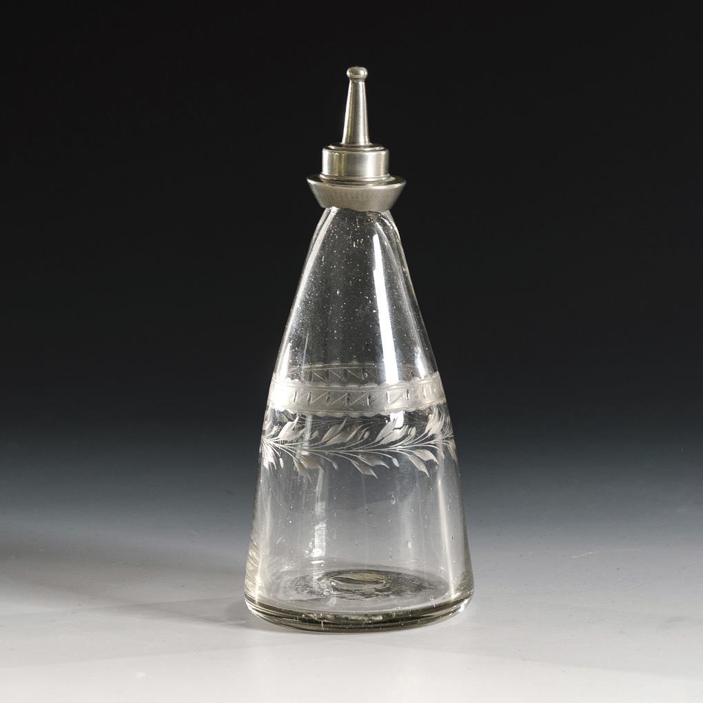 Konische Flasche mit zinnmontiertem Schraubverschluss.