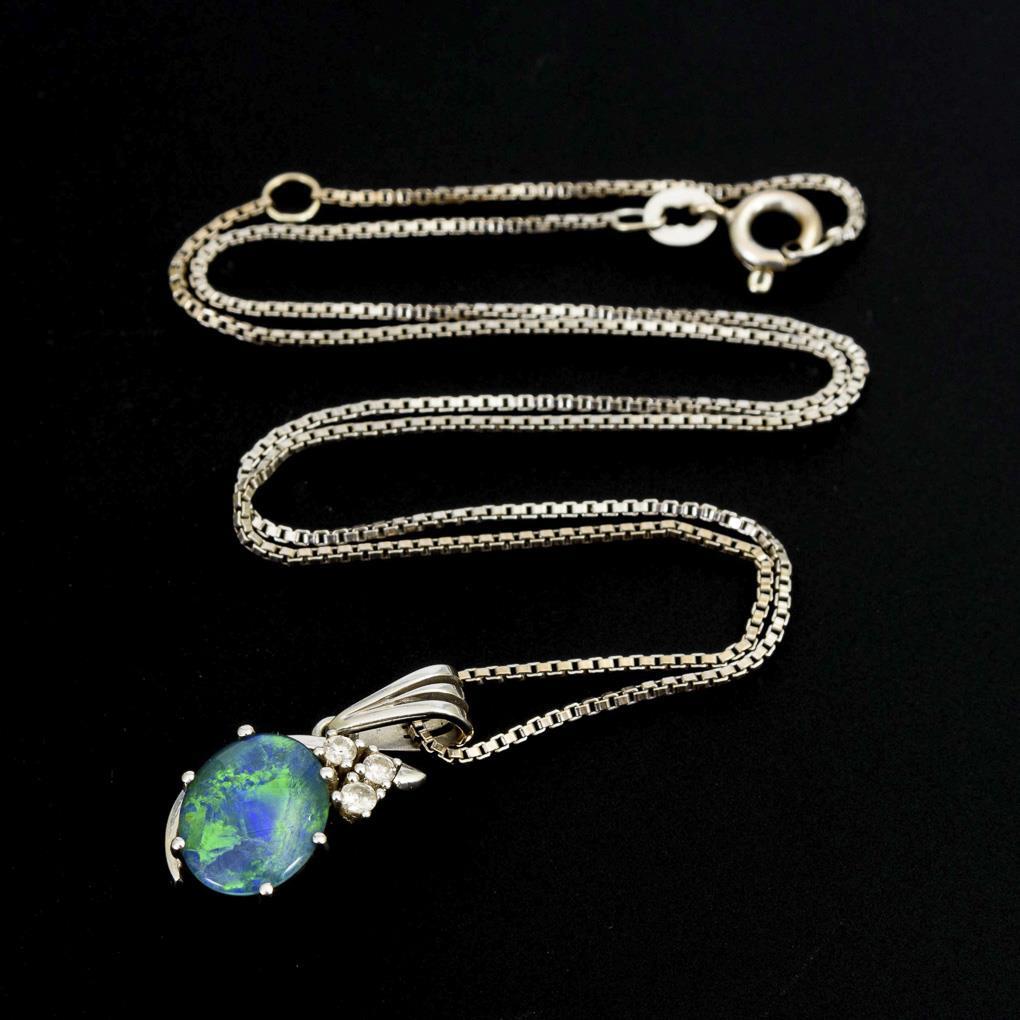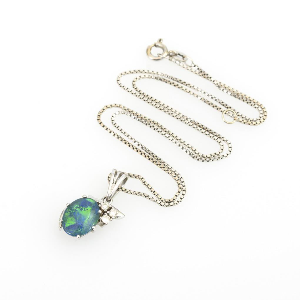 Anhänger mit Opaltriplette und Brillanten an Kette.