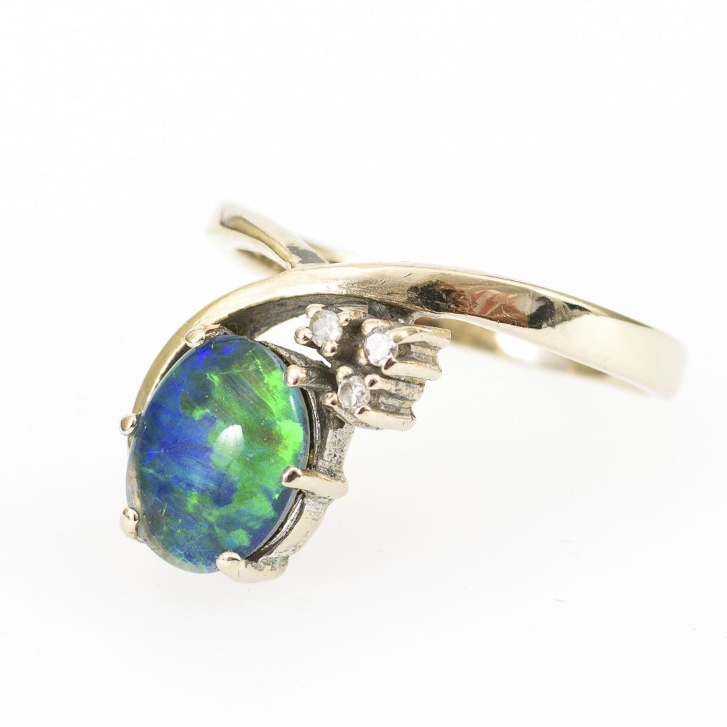 Sie befinden sich hier: Startseite Kategorien Schmuck Ring mit Opaltriplette und Diamanten