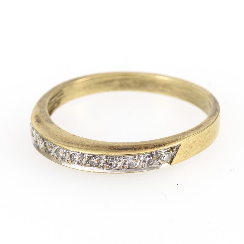 11 kleine, eingelassene Diamanten in schmaler Schiene.
