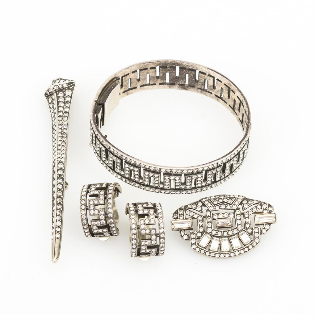 4 Teile Art-déco-Modeschmuck mit Strassbesatz.