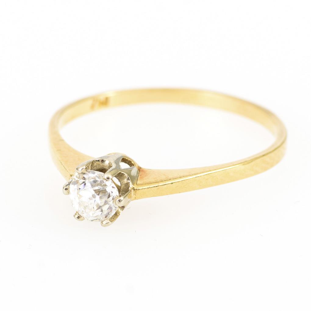Gelbgold 750 gestempelt. Brillant ca. 0,25 ct. Ringgröße 57. 2,1 g.