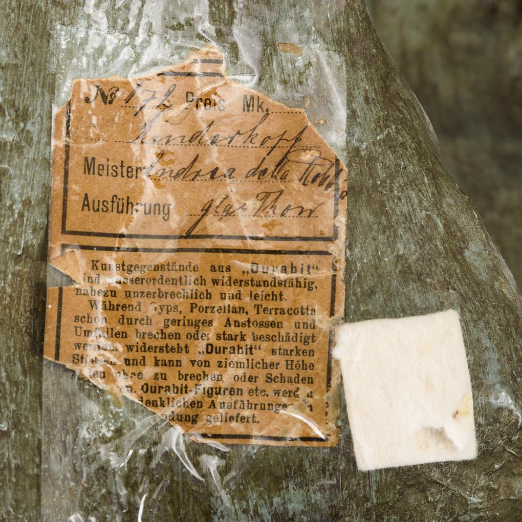 "Durabit" polychrom gefasst, verso alter Klebezettel mit Materialbezeichnung. Anfang 20. Jh. 32 x 32 x 12 cm.