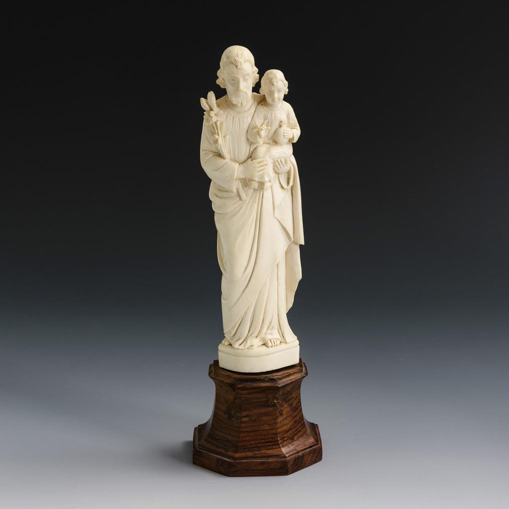 Elfenbeinfigur: Heiliger Josef mit dem Jesuskind.