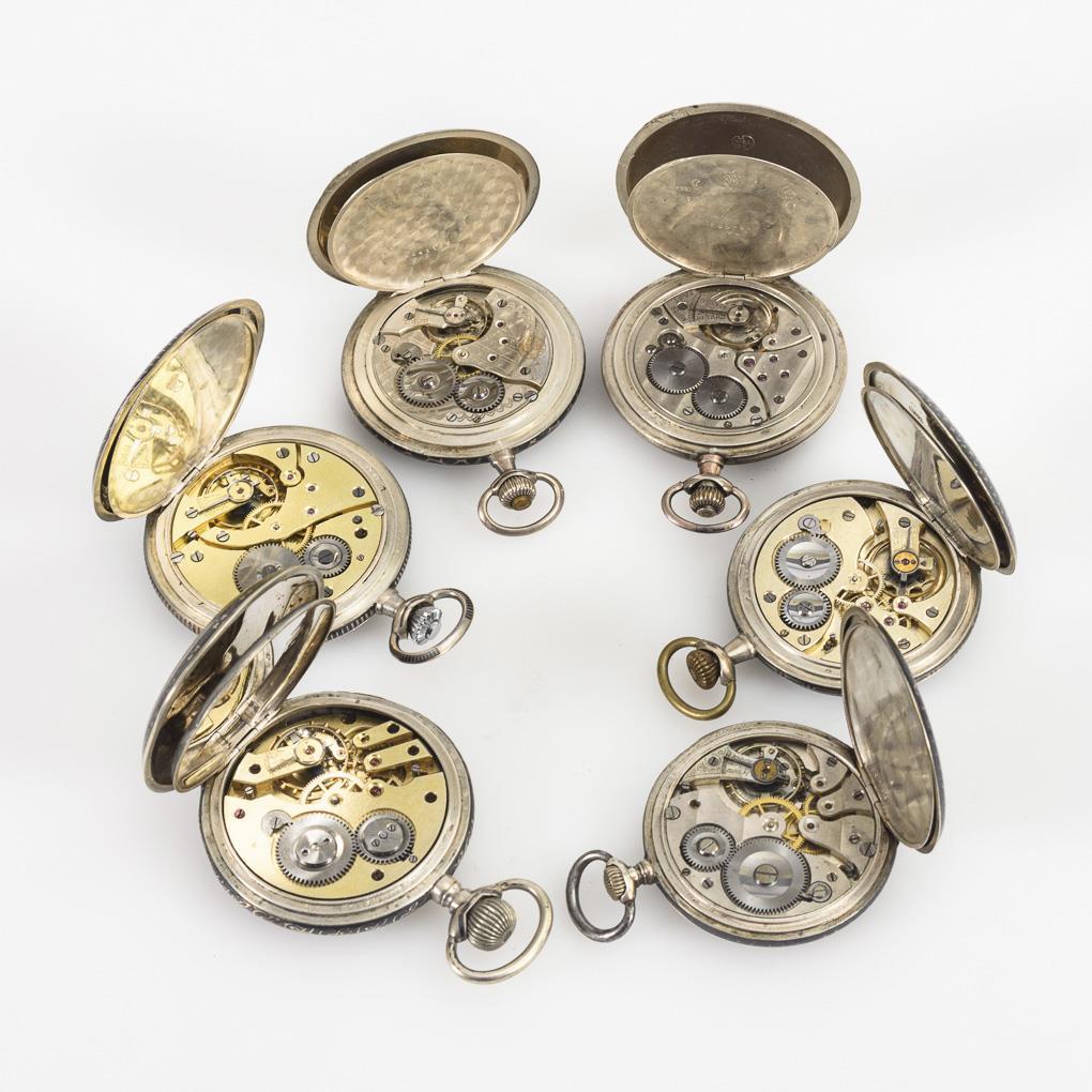 6 Art-déco-Taschenuhren.