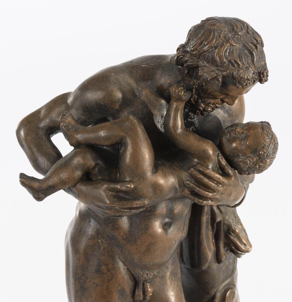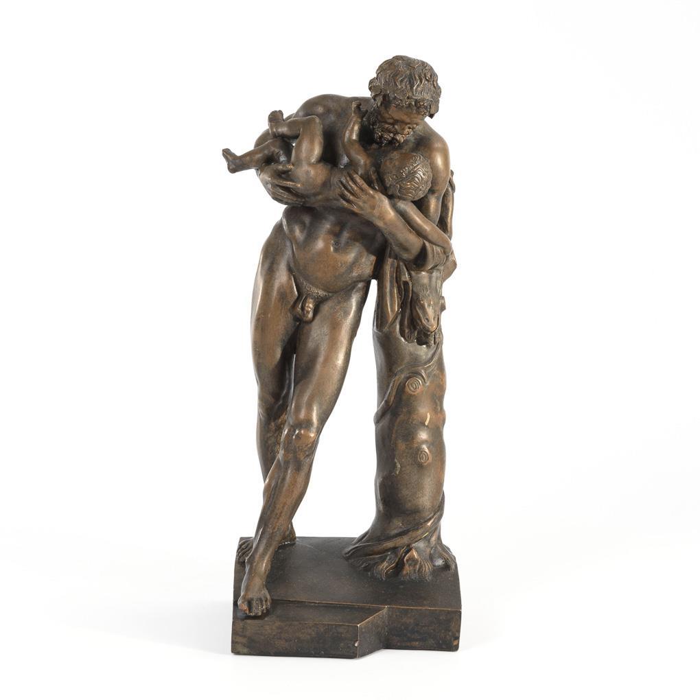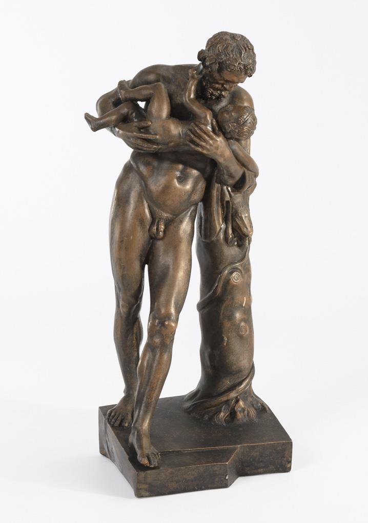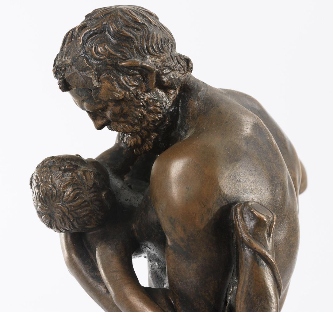 Nach dem antiken Original in der Münchener Glyptothek; auch "Borghese-Faun" bzw. "Silenos mit dem Bacchusknaben" genannt. 1 Reparatur, sonst wenige Alters-/Gebrauchsspuren.