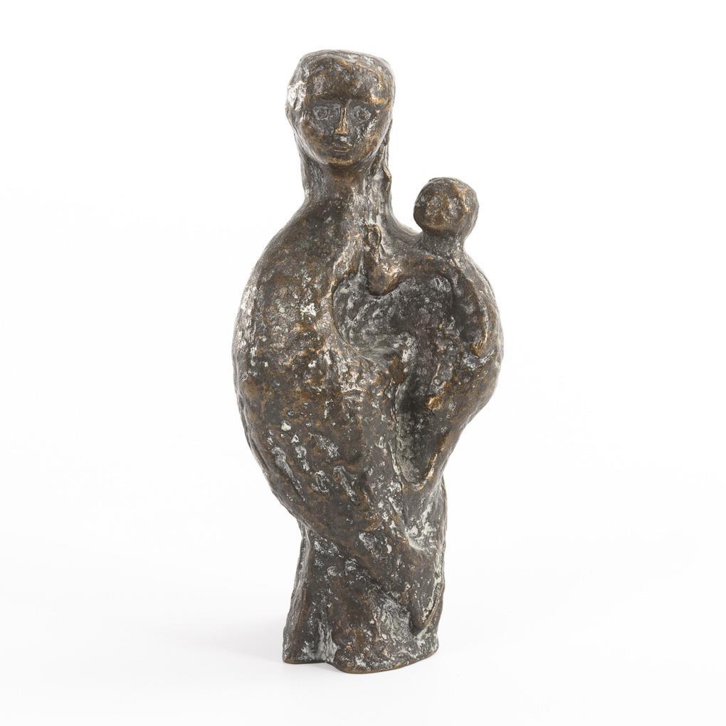 In kompakten Formen dargestellte Maria mit dem Jesuskind auf dem Arm.